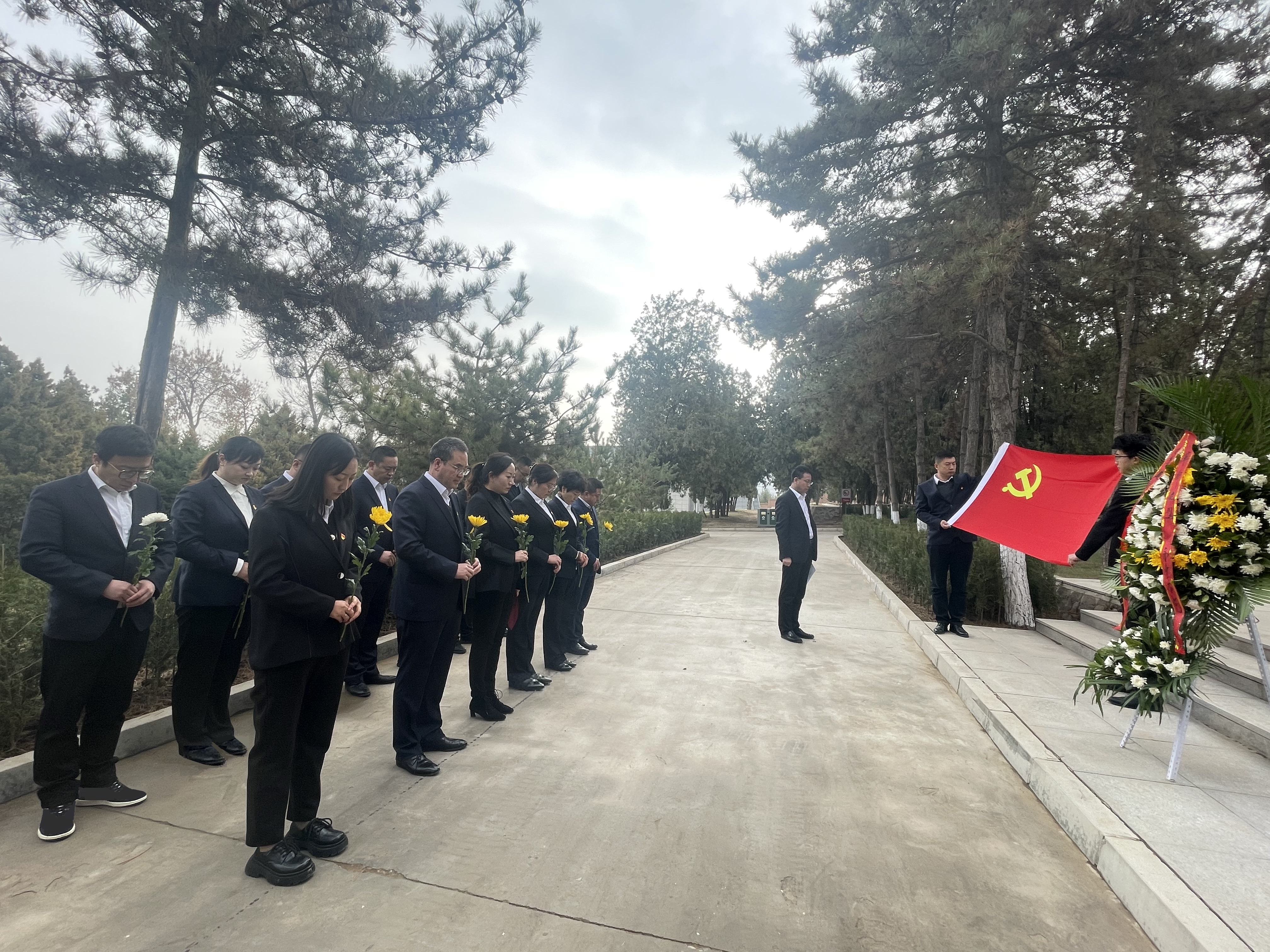 莊嚴肅穆的陵園內,公司全體人員整齊列隊,面朝英魂苑紀念碑,舉行烈士公祭儀式,向革命烈士默哀致敬,深沉哀悼。